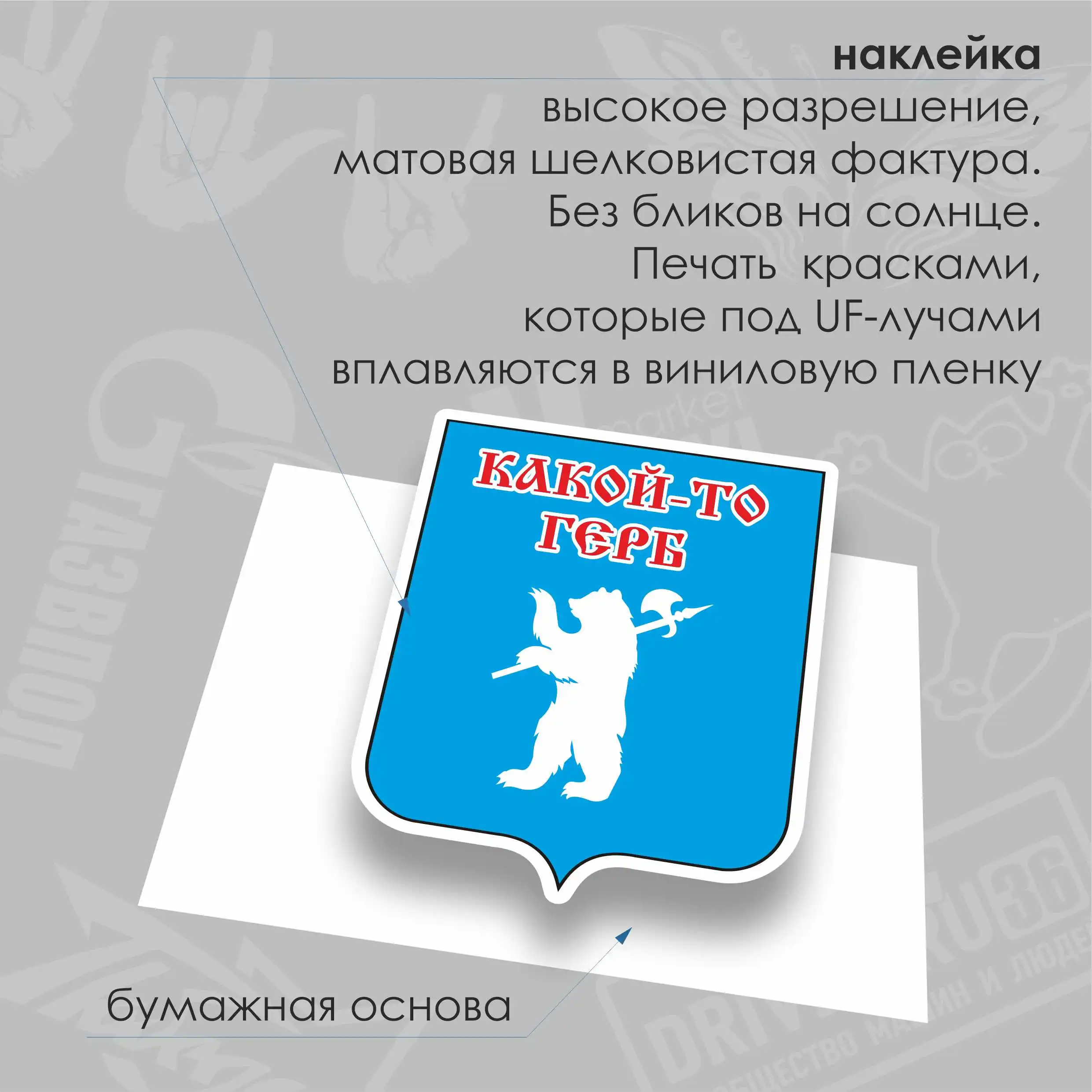 | Специальная стойкая наклейка. Не боится ни солнца, ни моек. Полноцветная HQ-печать по немецкой виниловой плёнке, плоттерная резка по контуру. | ||